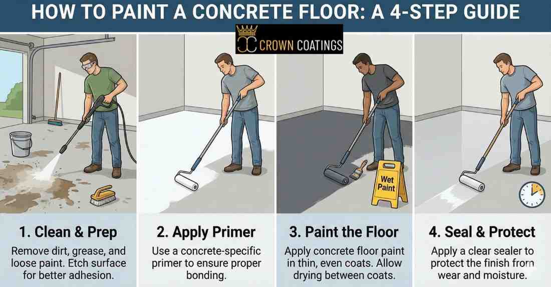 Painting a concrete floor can dramatically improve the look and durability of a space — whether it’s a garage, basement, patio or commercial warehouse. In this guide, we’ll walk through why it’s worth doing, how to do it step-by-step, common mistakes to avoid, and when you might be better off with a coating or other alternative. Plus we’ll include internal links (silos) to help you dig deeper into related topics and boost SEO.